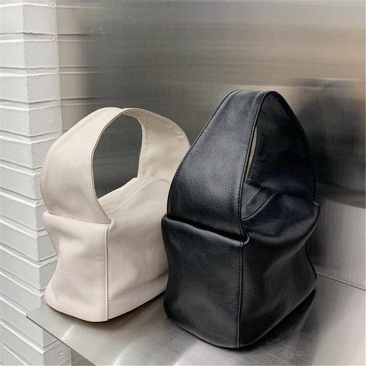 ハンドバッグ 豆腐バッグ ソフトレザー 大容量