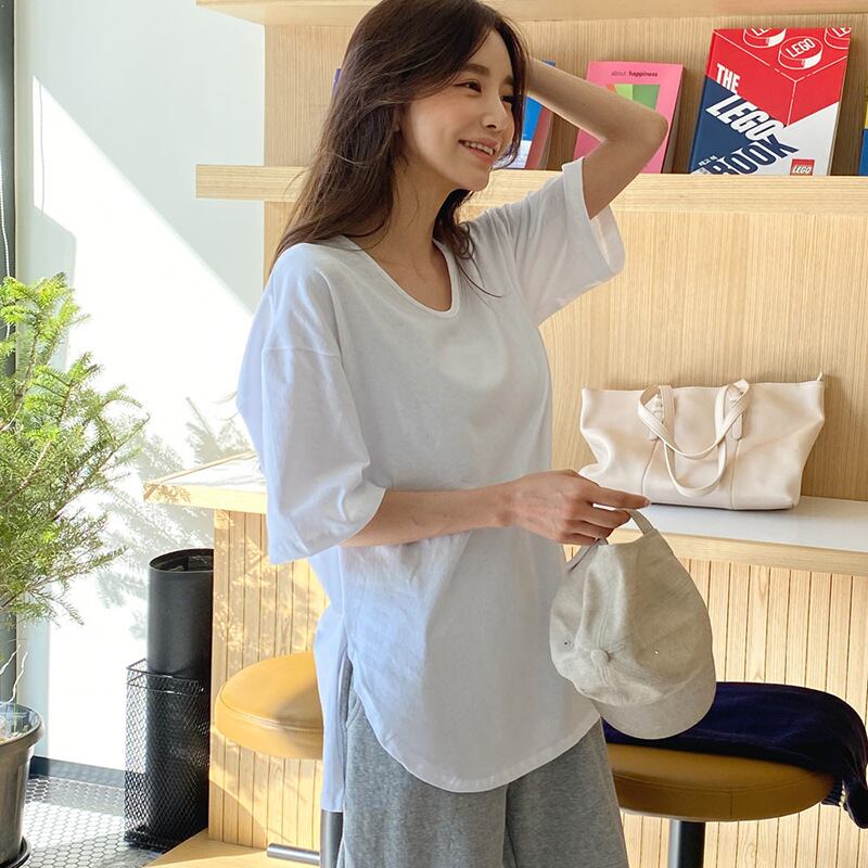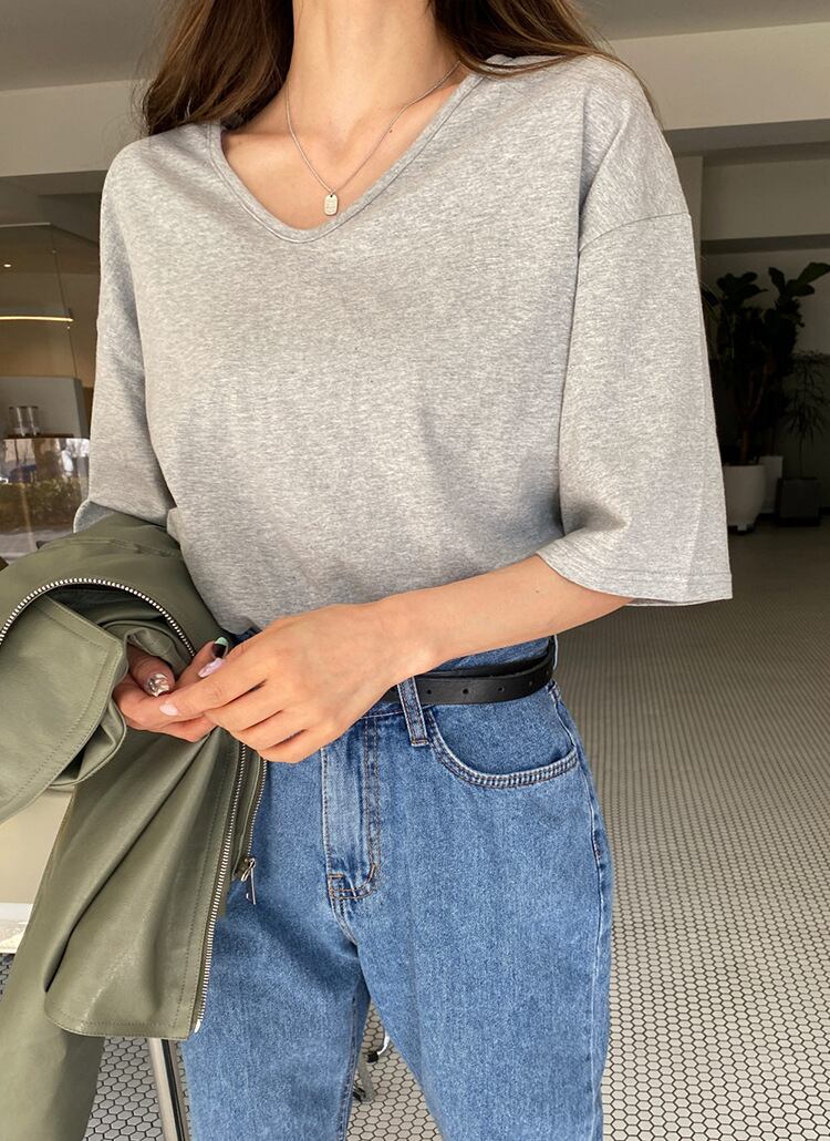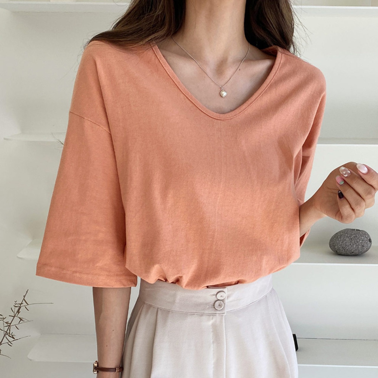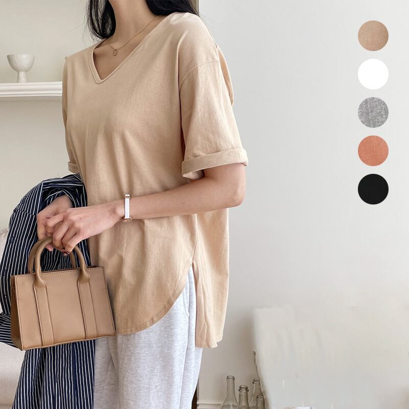 Tシャツ コットン ゆるTシャツ Vネック レディーストップス 無地tシャツ 半袖 着回し