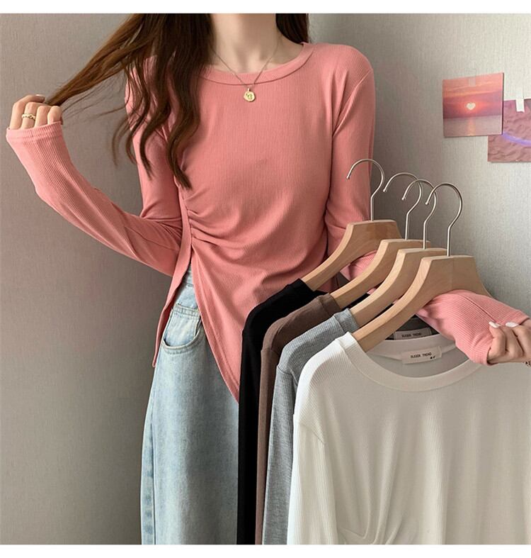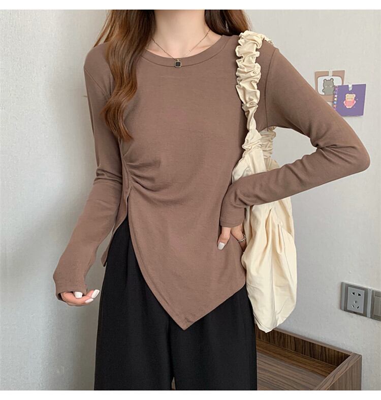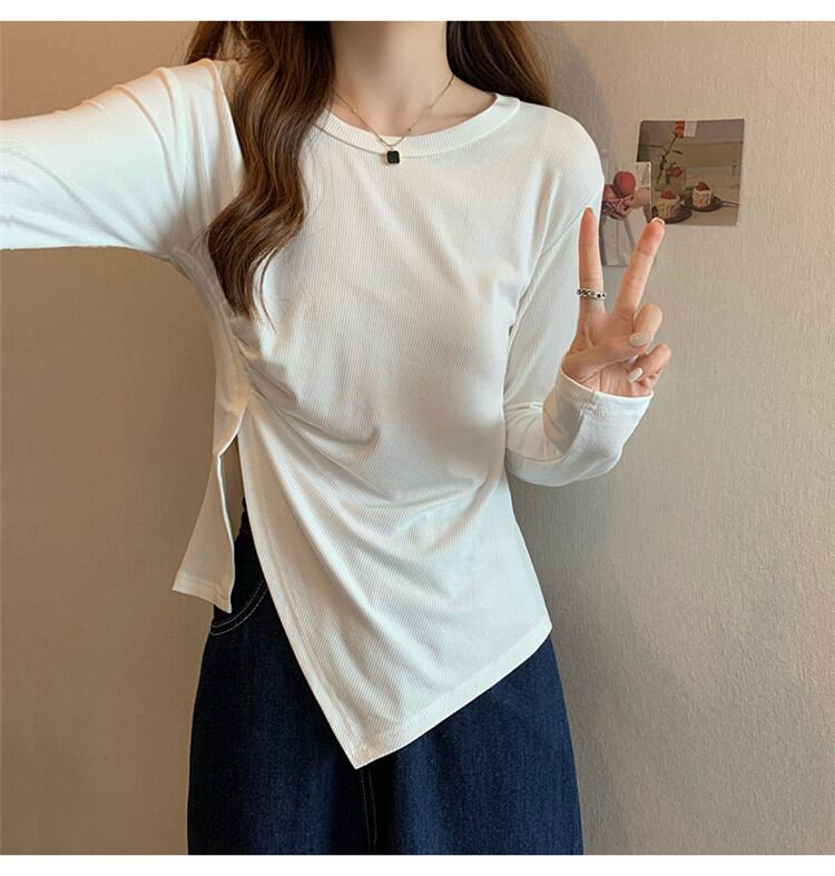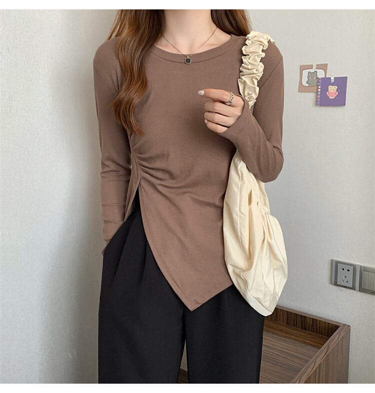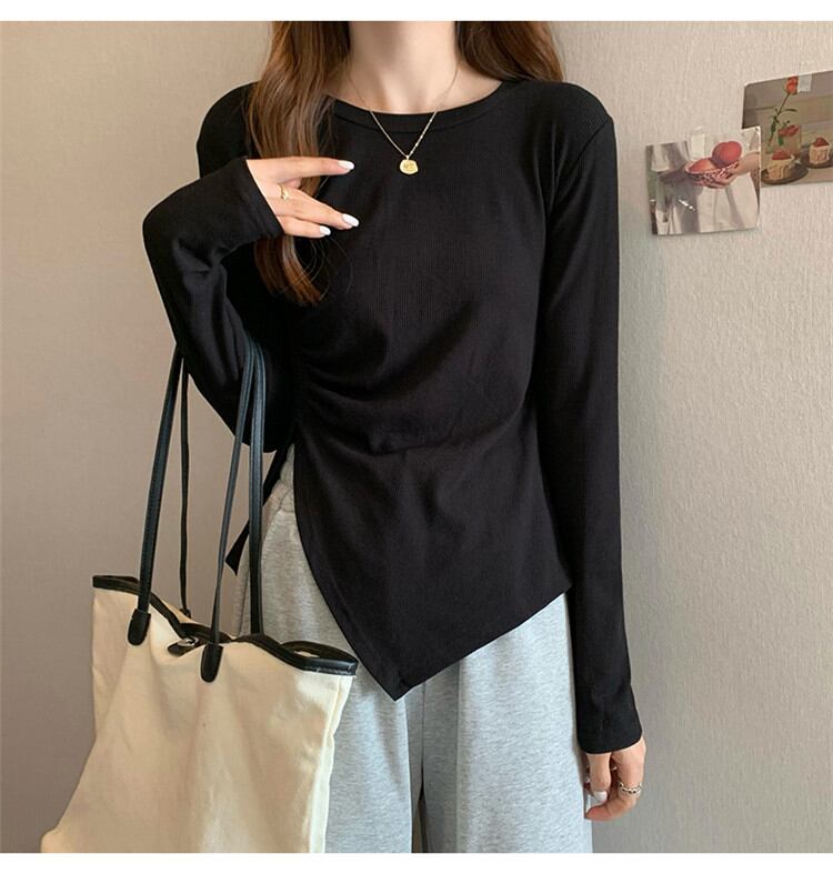 アシンメトリー大人女子 イレギュラー 長袖 Tシャツ 初秋 スリムフィット