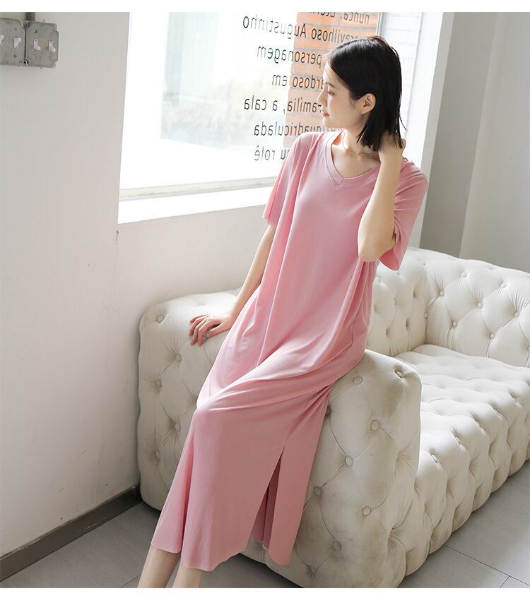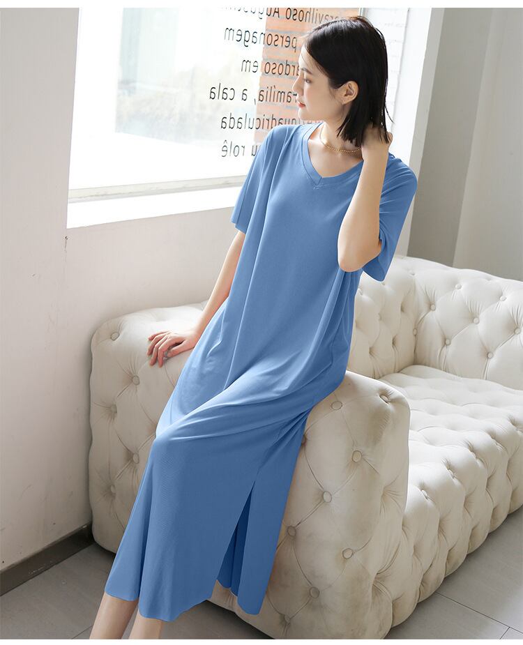 春夏 ゆったりワンピース レディース スプリット スリム 半袖 綿 Tシャツ