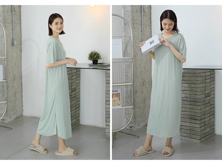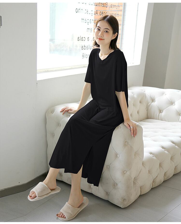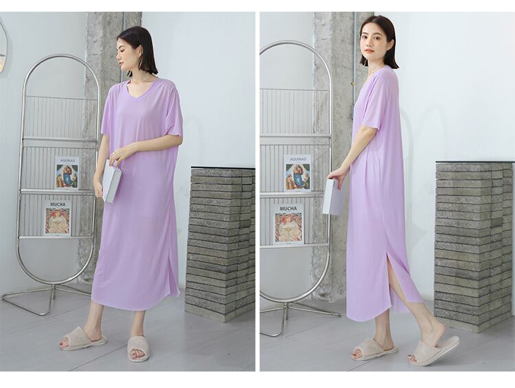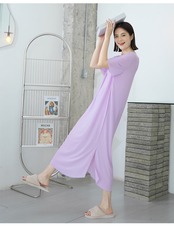 プルオーバー ロング アイスシルク スリット ワンピース Vネック 半袖