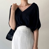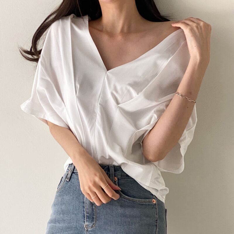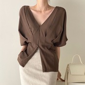 Tシャツ Vネック 半袖 シフォンブラウス レディース 着回し おしゃれ