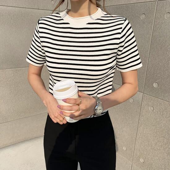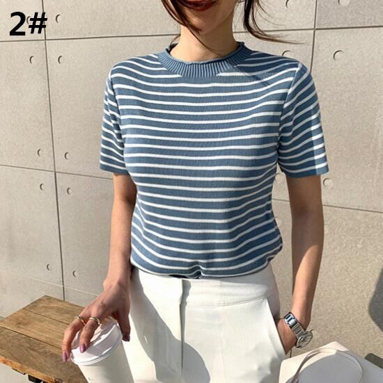 Tシャツ トップス レディース ストライプ ボーダー 半袖 ニット