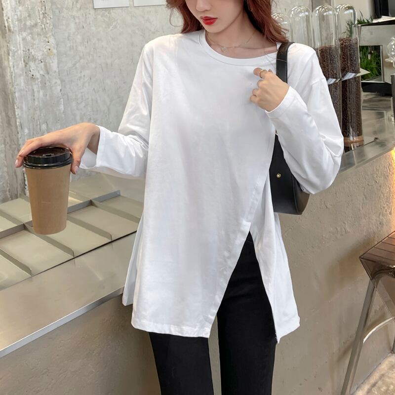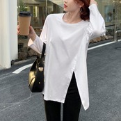ホワイト Tシャツ レディース 長袖 ゆったり スリット
