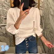パフスリーブ Tシャツ 人気Tシャツ 八分袖 カジュアル レディース 春秋
