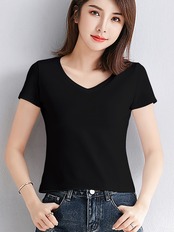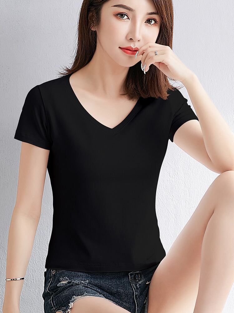 Tシャツ 人気 半袖シャツ 無地 カジュアル レディース Uネック Vネック