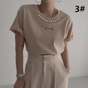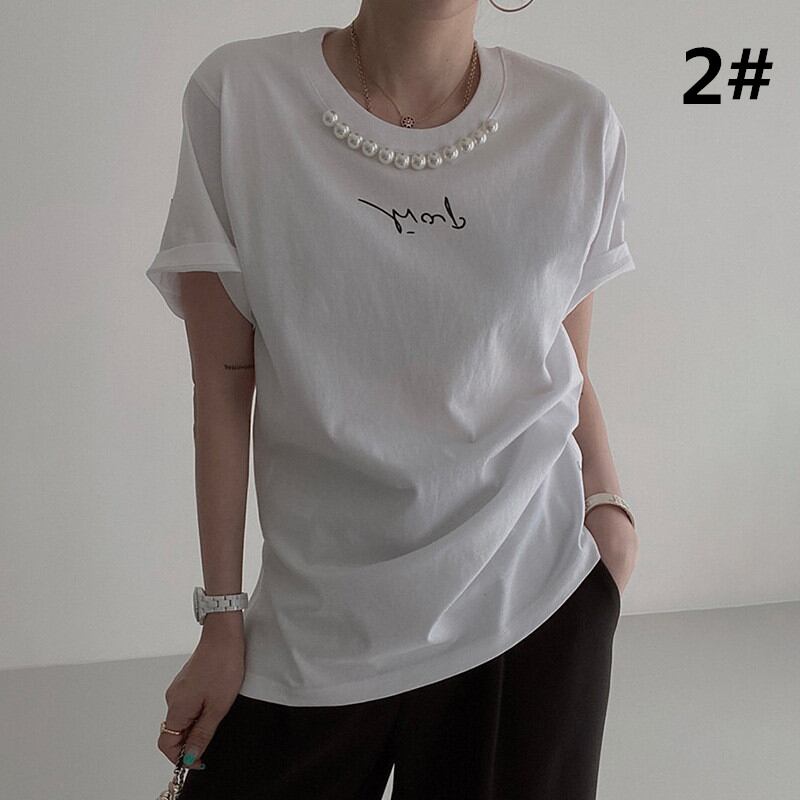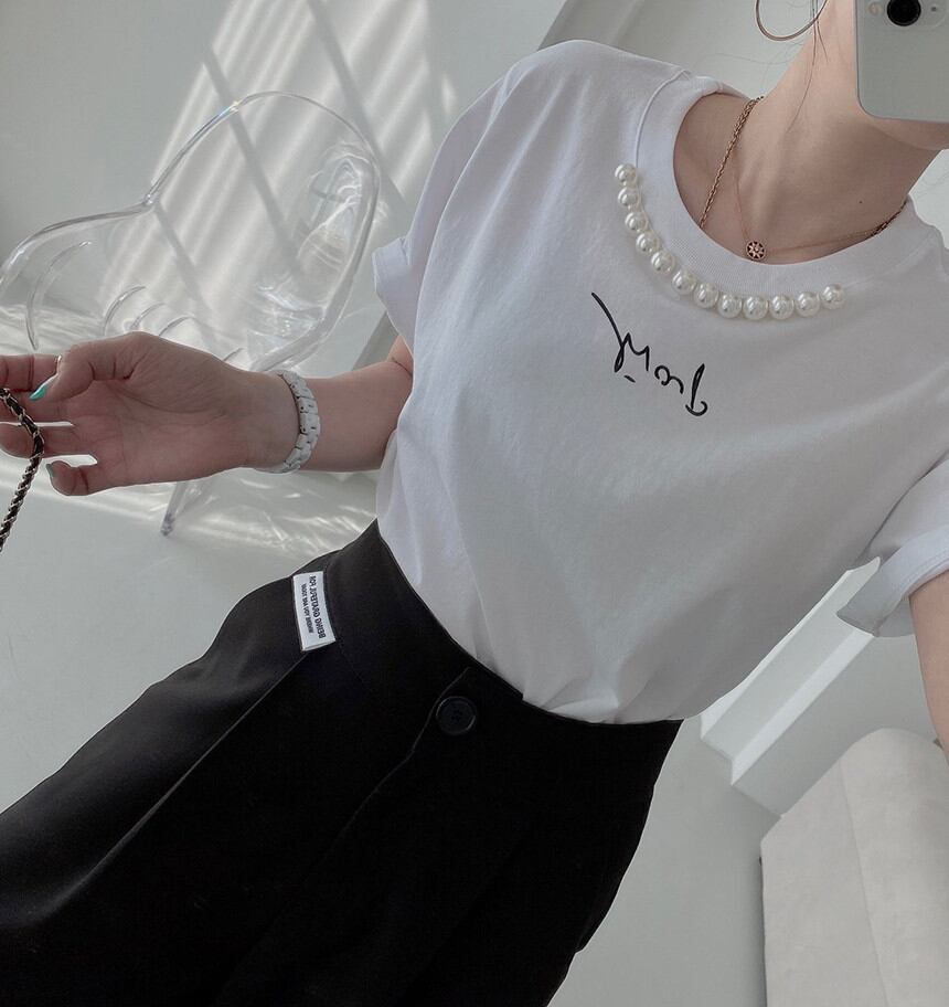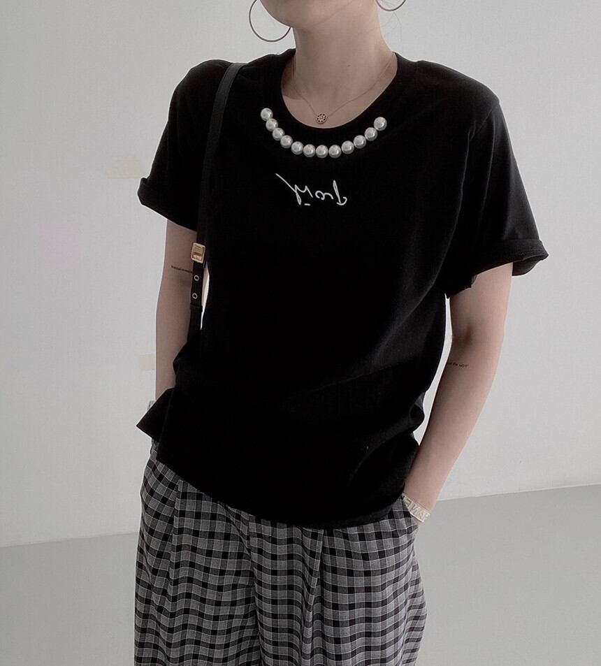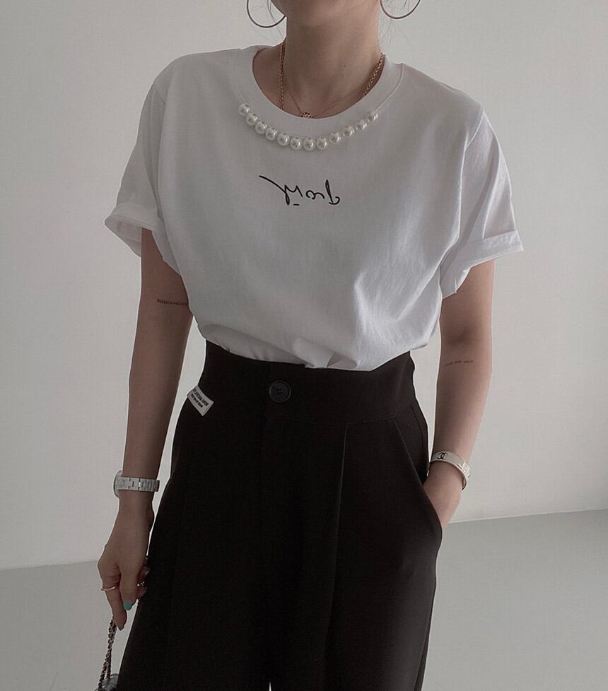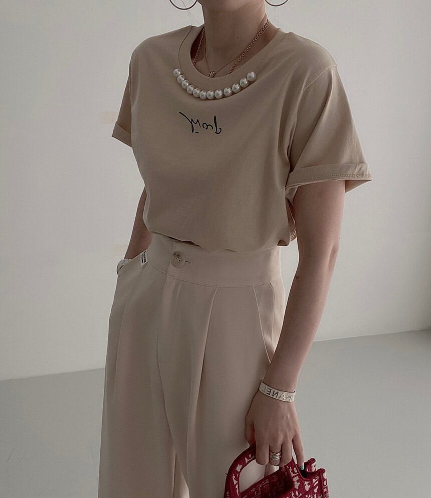 Tシャツ 半袖シャツ トップス レディース ラウンドネック パール