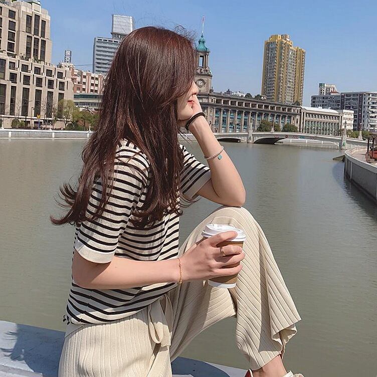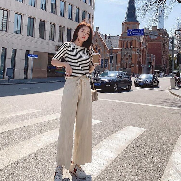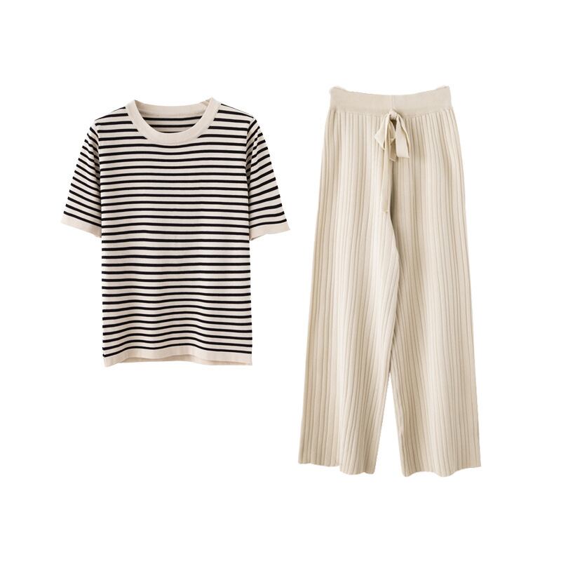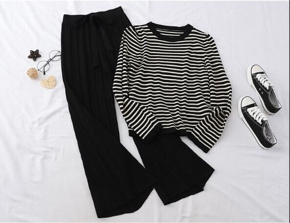 2点セット ニット セットアップ ボーダー 体型カバー レディース セーター ロングパンツ