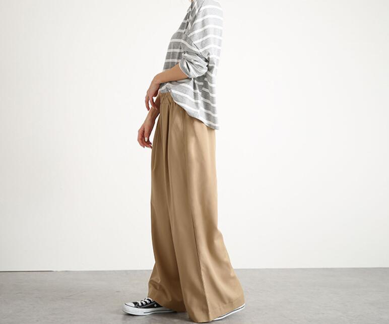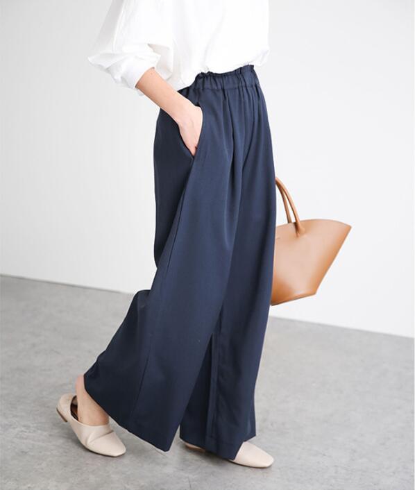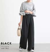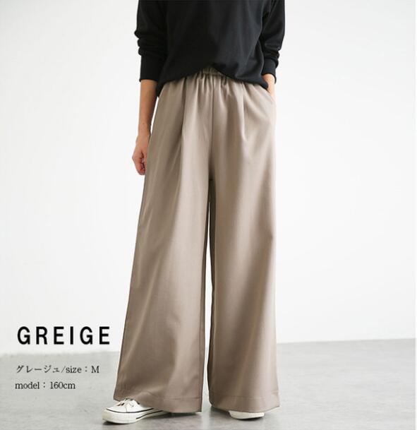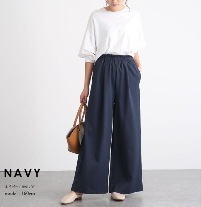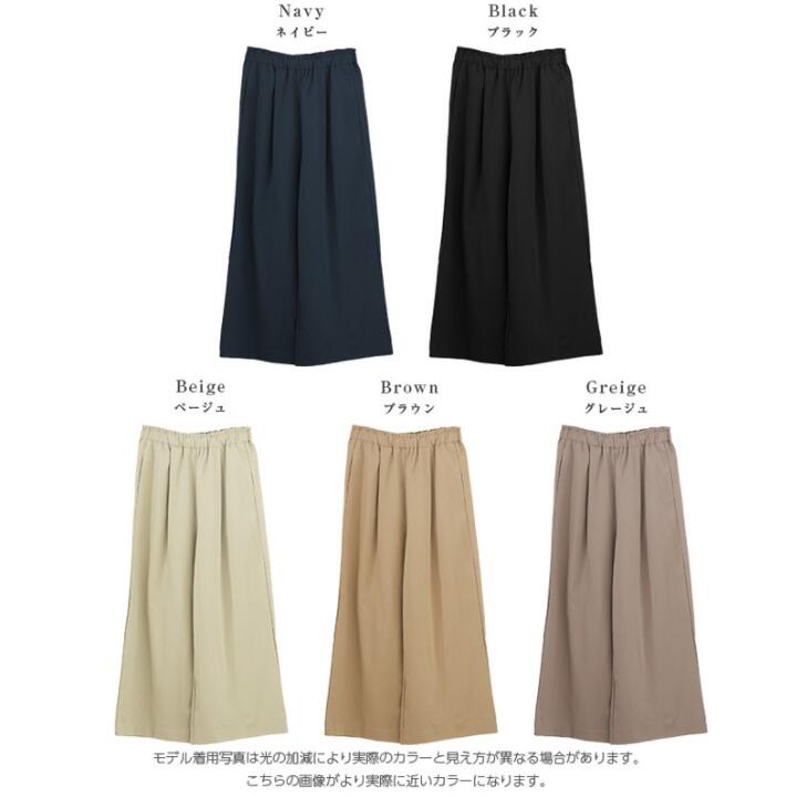 ワイドパンツ ウエストゴム ロングパンツ レディース ボトムス 体型カバー 5色
