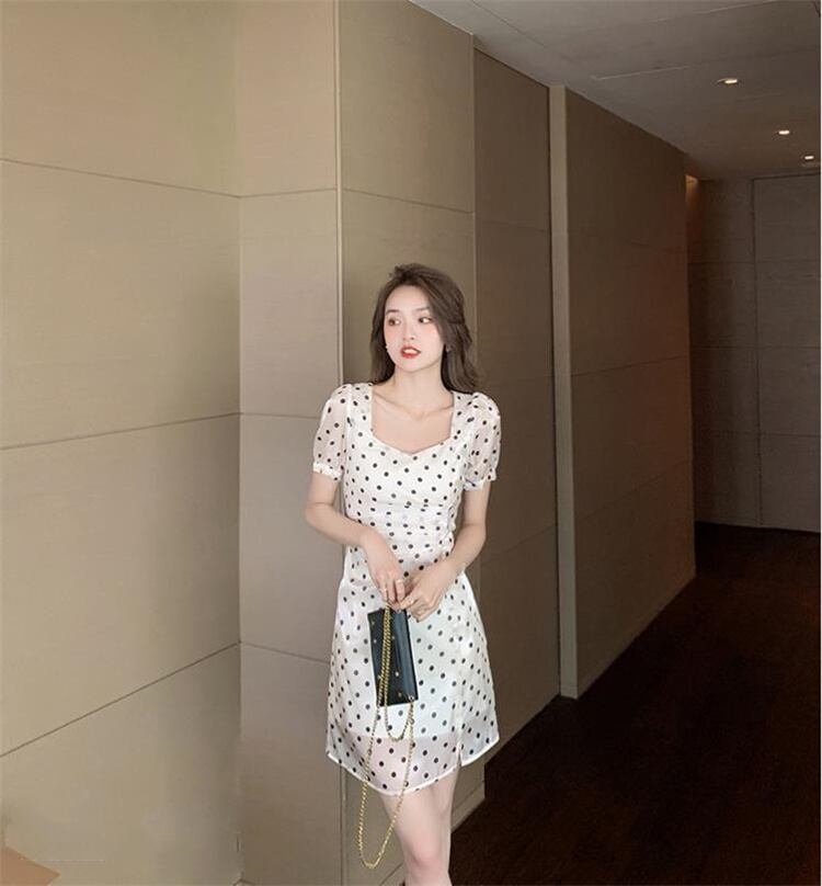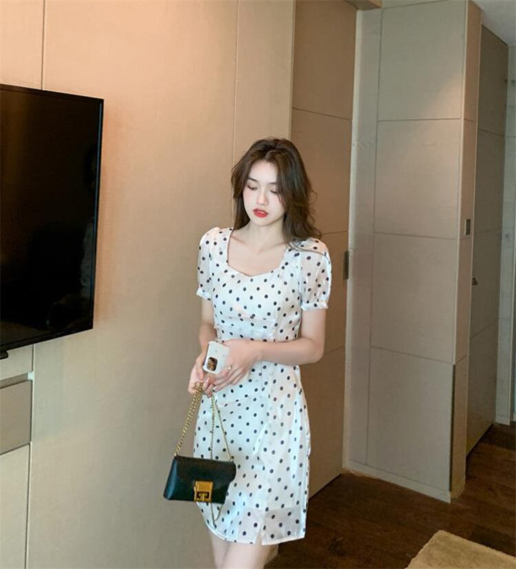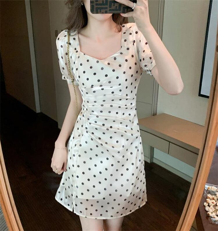 ドット 半袖 ワンピース スリムフィット OL