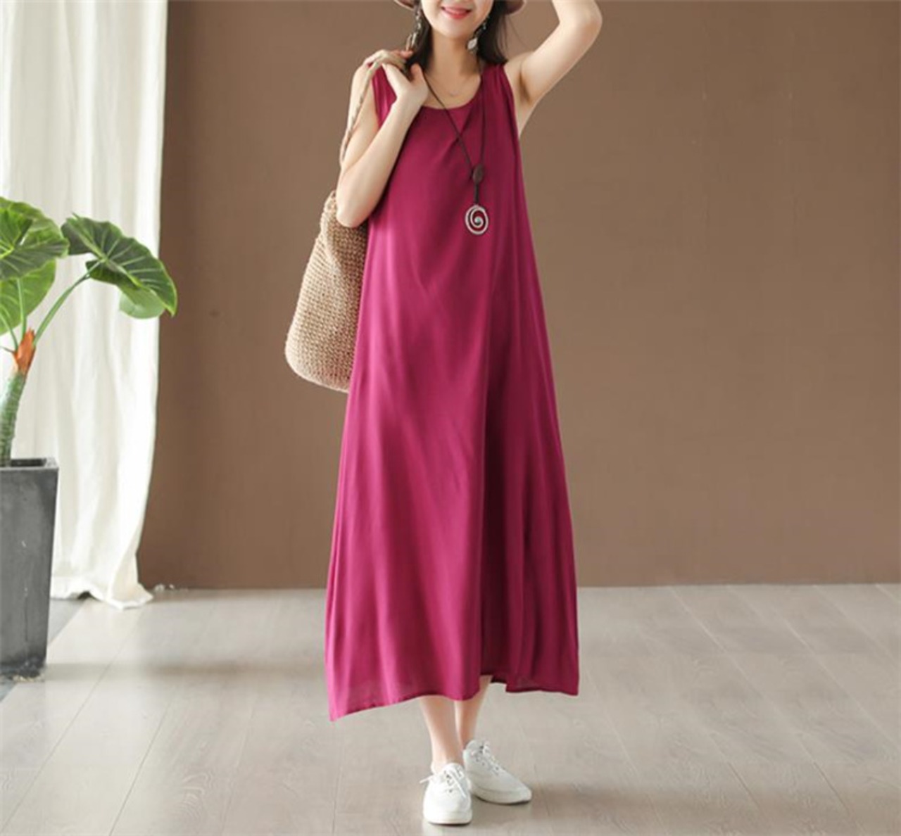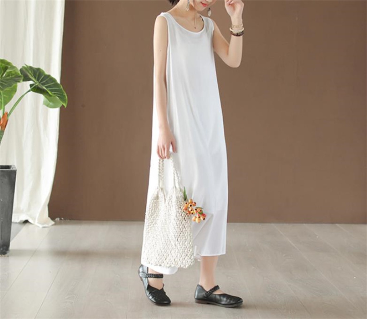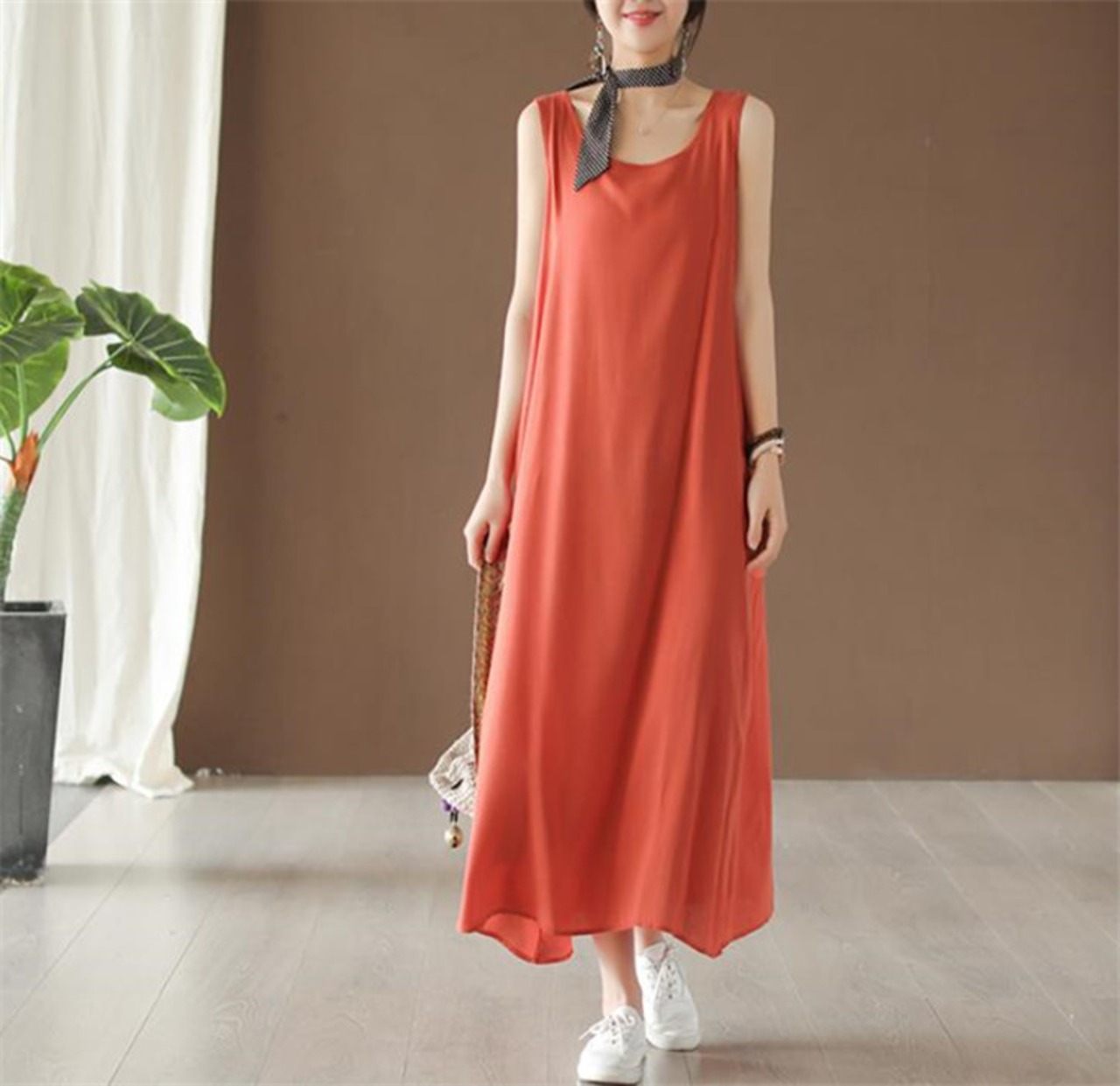 婦人服 ゆったり 薄い 袖なし ベスト ワンピース