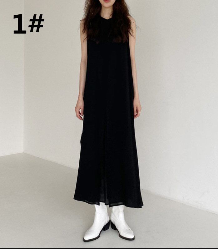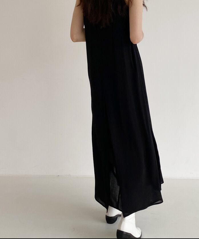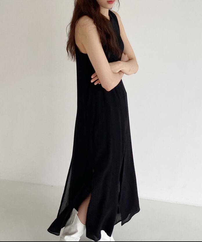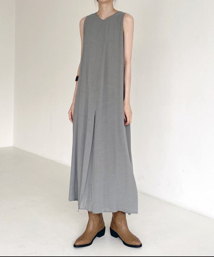 ワンピース ノースリーブ ラウンドネック 体型カバー 大人気 レディース