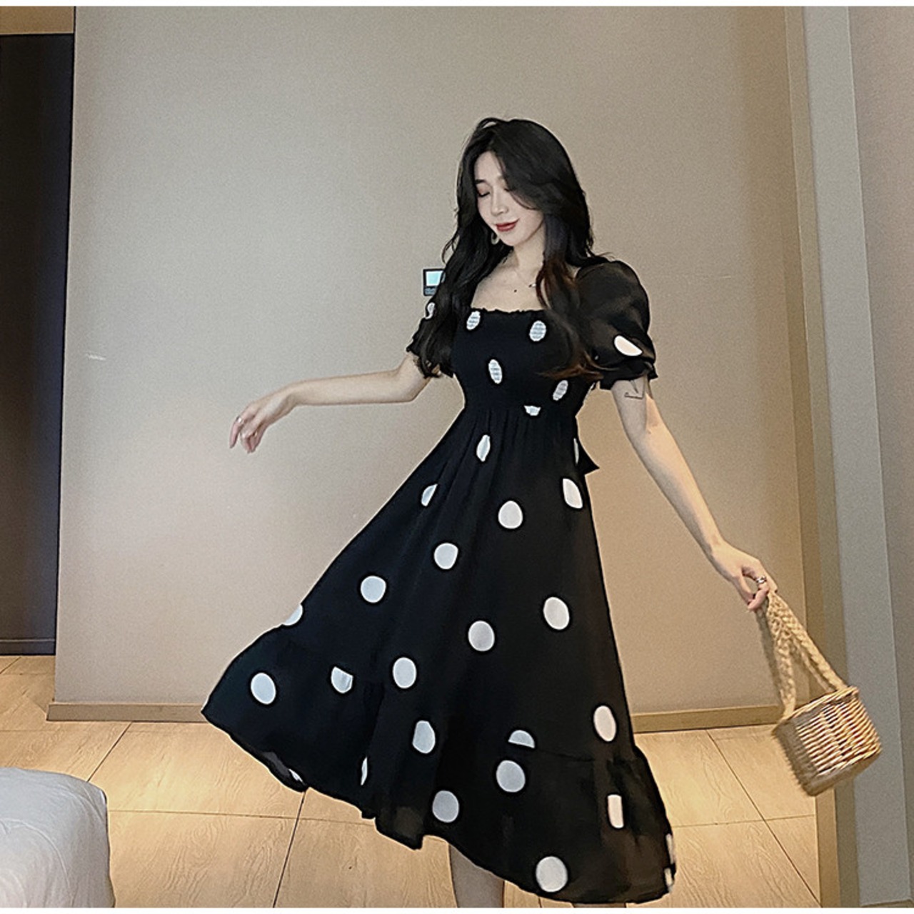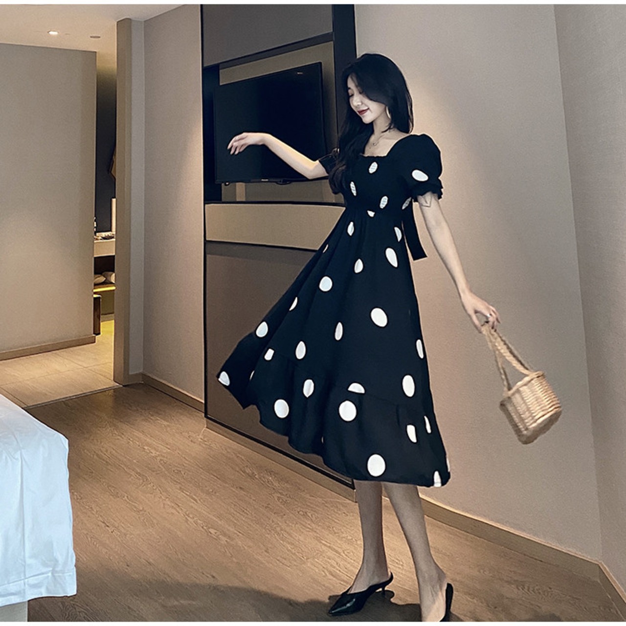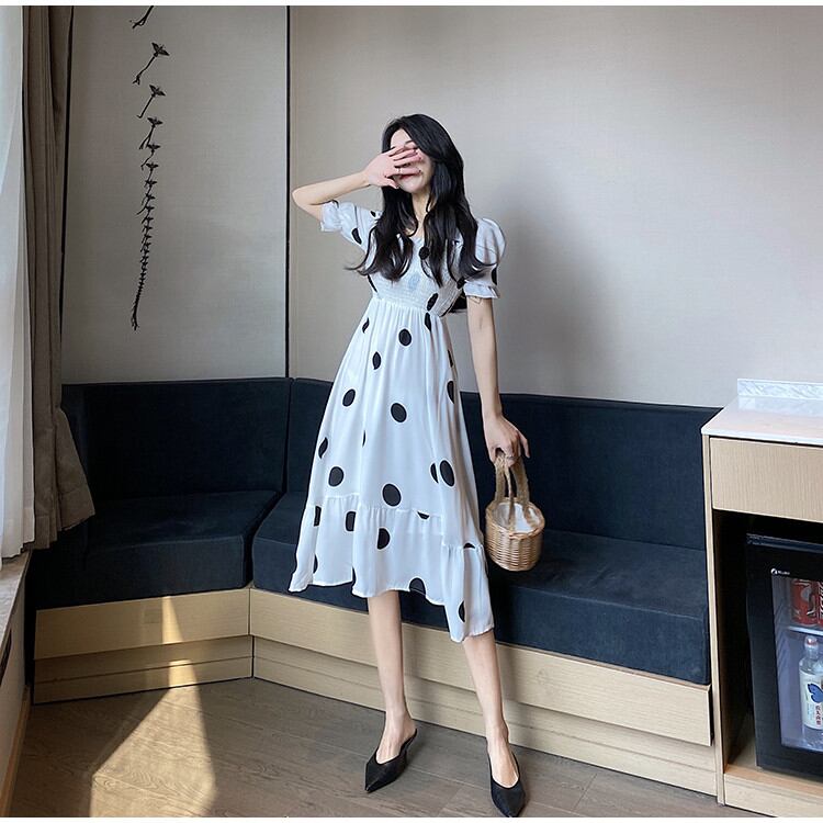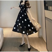 サマー フレンチスタイル レトロ Aライン ドット ワンピース りぼん
