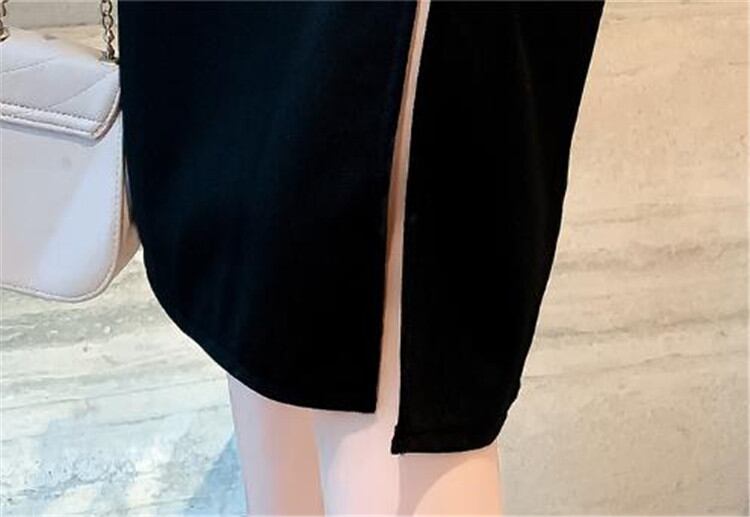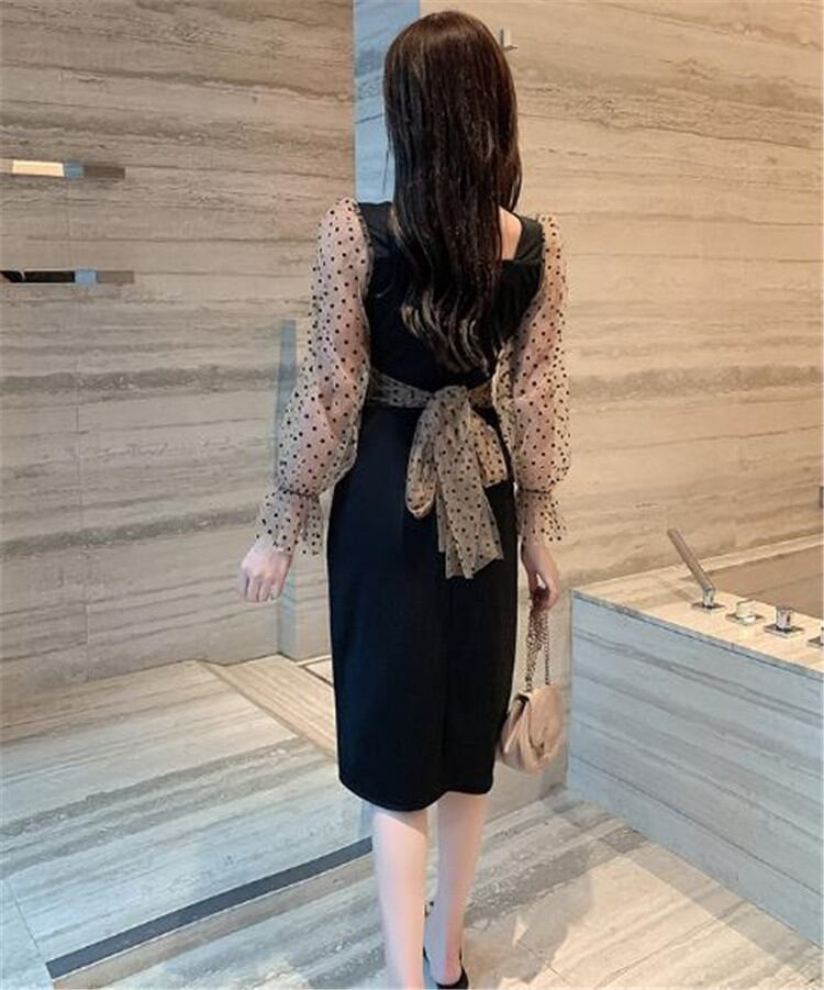 スリム 縫付 ワンピース 女性 スリット入り ドット りぼん