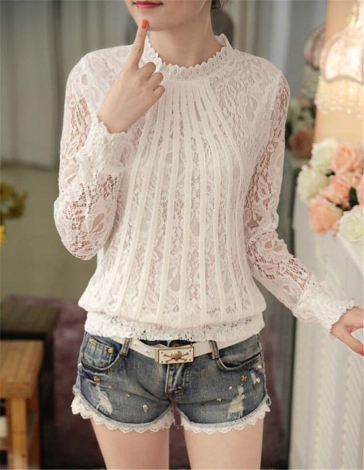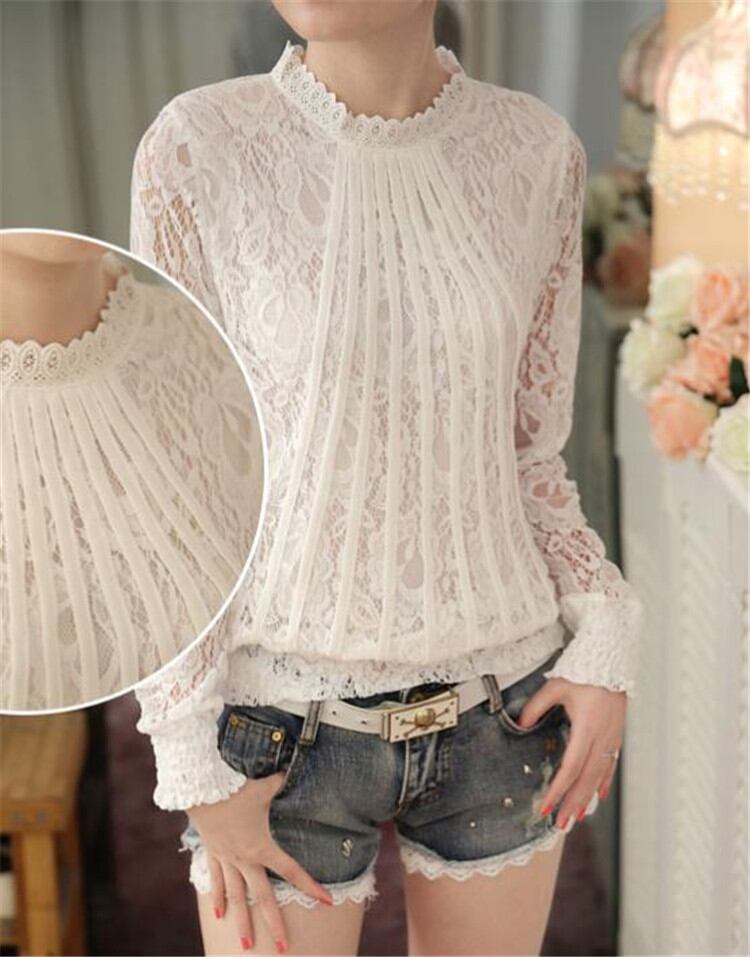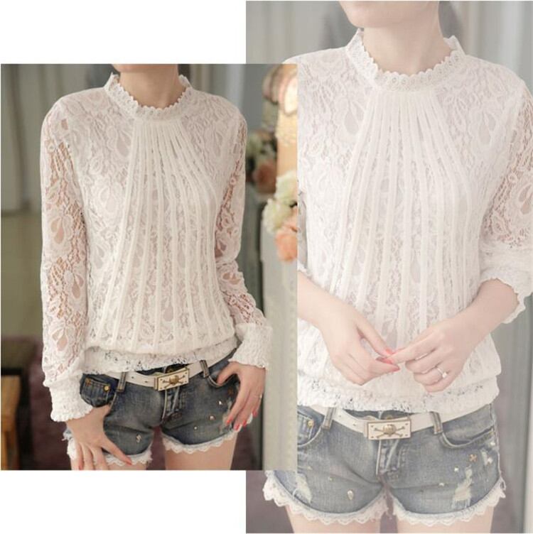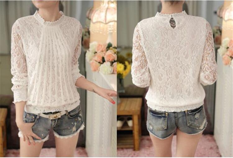 可愛いレトロトップス レースシャツ ピュアカラー スリム