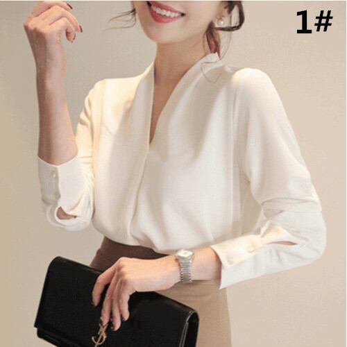 ブラウス シャツ レディース トップス シフォン Vネック 長袖 フォーマル シンプル 無地 通勤 OL オフィス