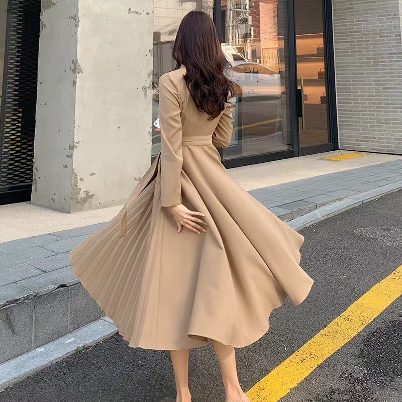 プリーツスカートワンピース カシュクール ハイウエスト
