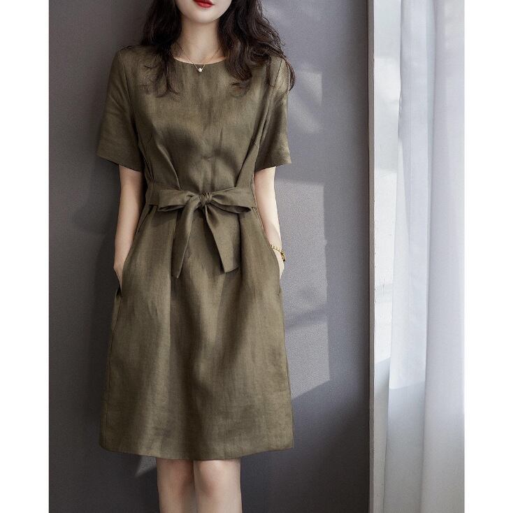 ワンピース Aライン シンプル リボン 通勤